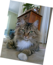To keep Storm company whilst she writes, are her two rescue cats: Lady Scraggy McWhiskers - Norwegian Forest mix who completely rules the roost, and the tombyish Gimpy who may be tiny but she is certainly mighty .
